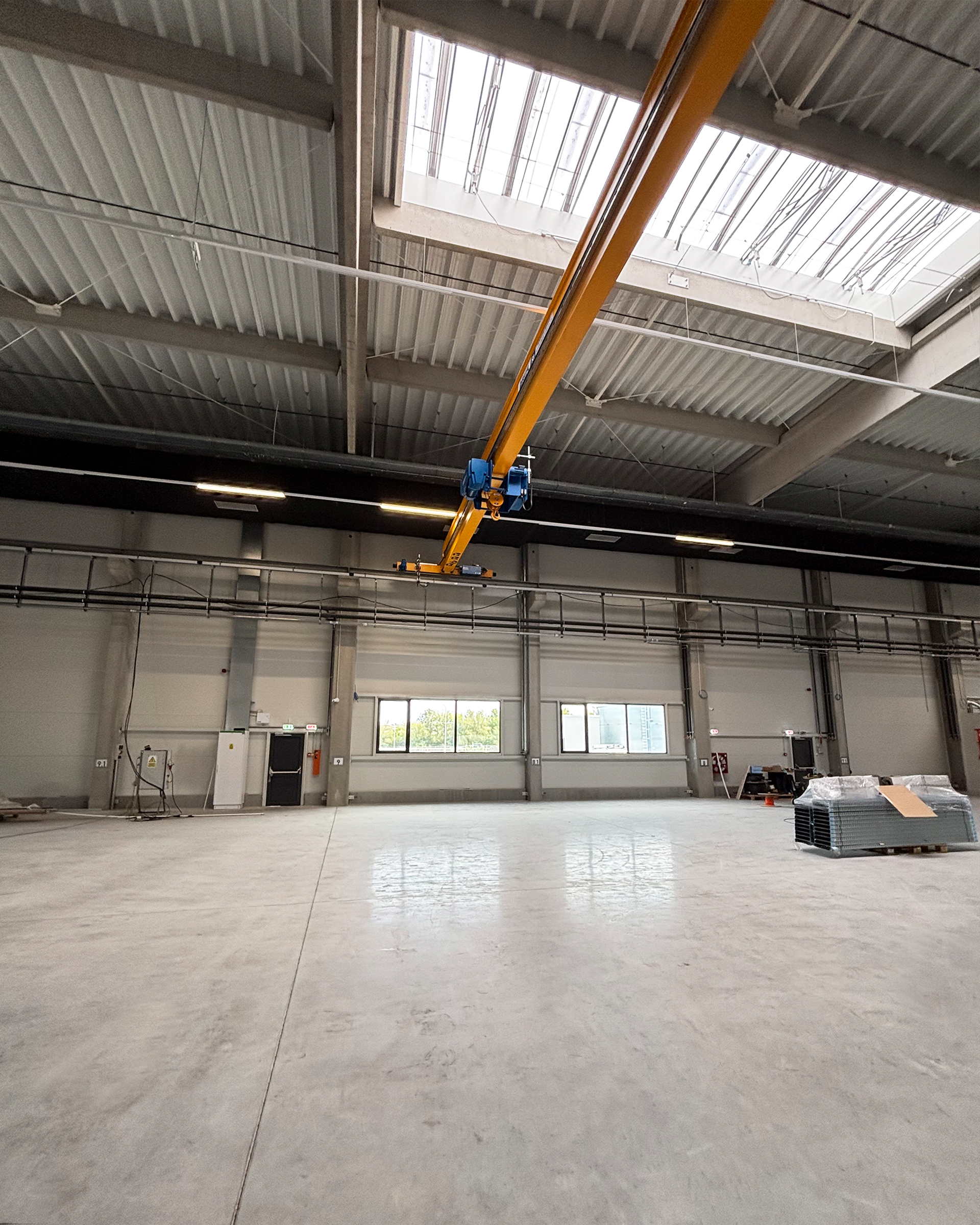 Ansamblul industrial este compus din două corpuri de clădire: unul dedicat zonei administrative, pentru birouri, vestiare și spații tehnice, iar cel de-al doilea dedicat liniei de producție și depozitării. Pe termen lung, ansamblul poate fi extins prin alipirea unui corp identic.